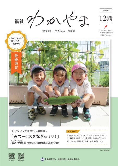 福祉わかやま12月号は、特集「民生委員が創り育ててきた『生活福祉資金貸付制度』-地域に根ざした支援のかたち-」のほか、地域福祉活動紹介、フクシメシなど充実の誌面となっています。